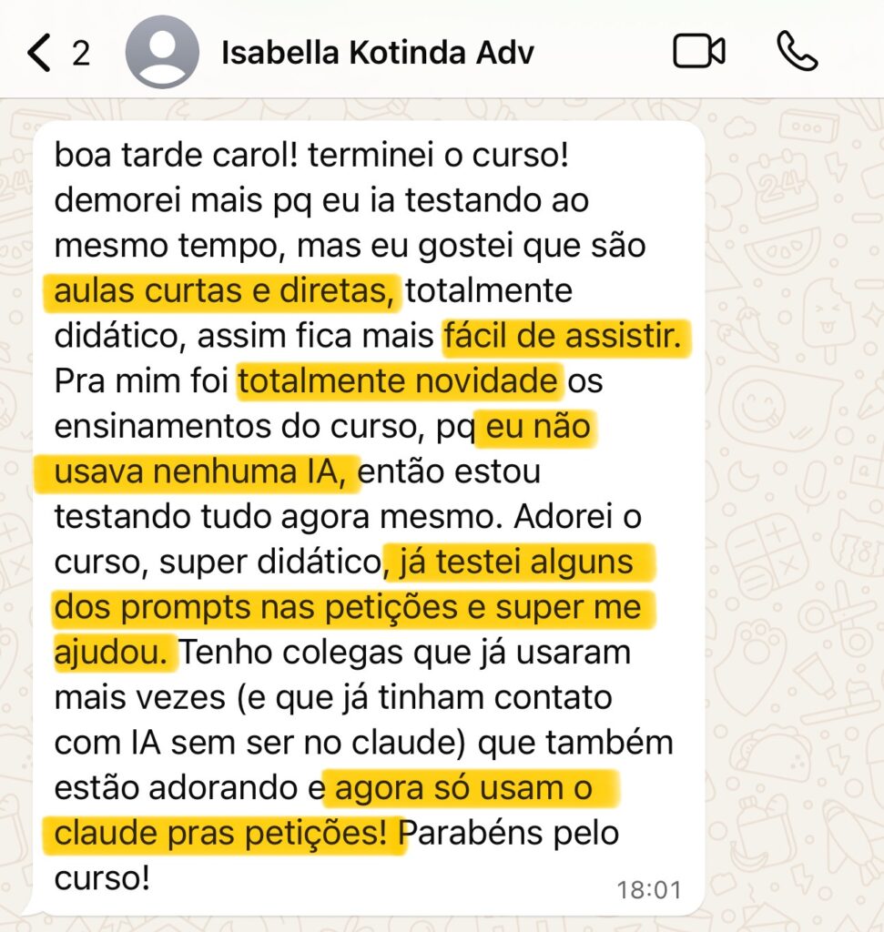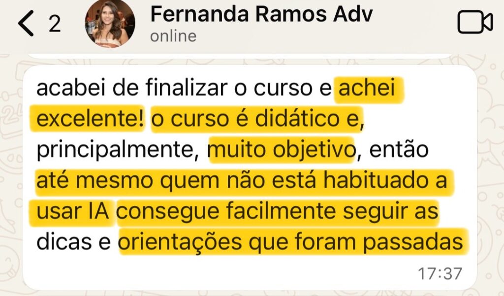 A teoria é na medida certa: você domina os fundamentos essenciais da IA aplicados ao Direito, com foco total em uso prático, eficiência e resultados reais.